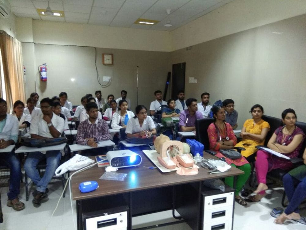 Around 35 students attended it. Intubation technique, mask holding and bag- mask ventilation was taught and hands-on training given.