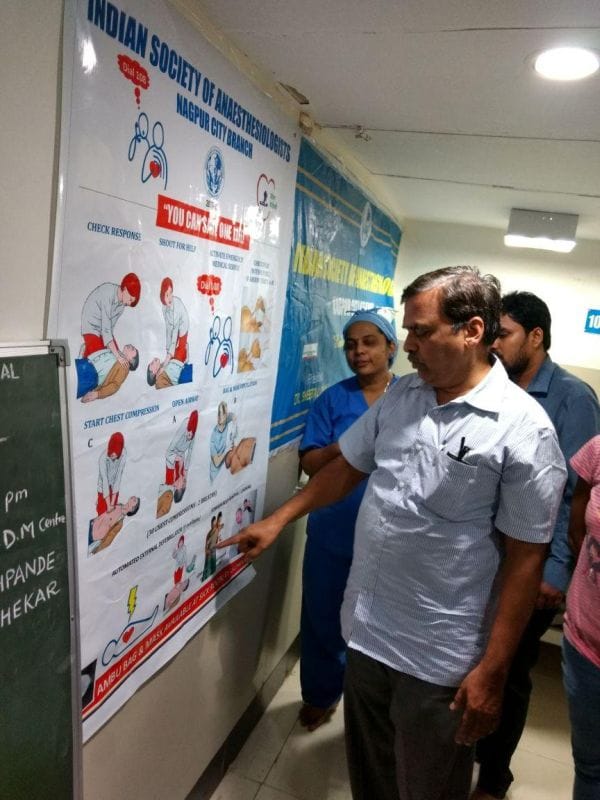 ISA NCB conducted CPCR demonstration and hands-on training, today (7-11-2017) at K.G. Deshpande hospital and cardiac care centre at Ramnagar, Nagpur. Dr. S. K. Deshpande (senior member) and Dr. Jyoti Panhekar conducted the workshop. About 25 paramedical staff attended the workshop.