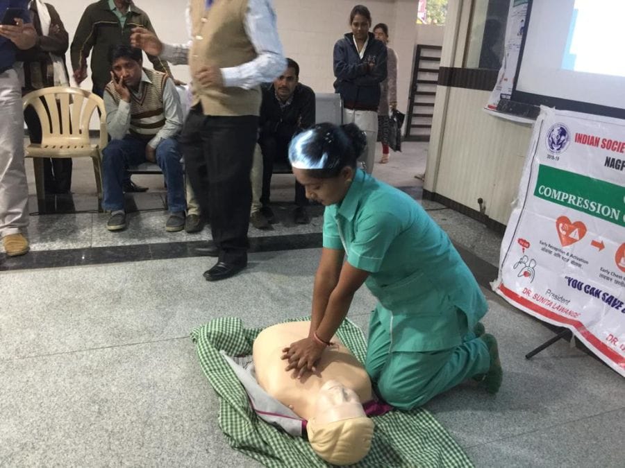 On occasion of new year celebration, on 2nd January 2019, BCLS activity was conducted for 50 nursing and paramedic staff of Green Care Hospital, Manewada, Nagpur.