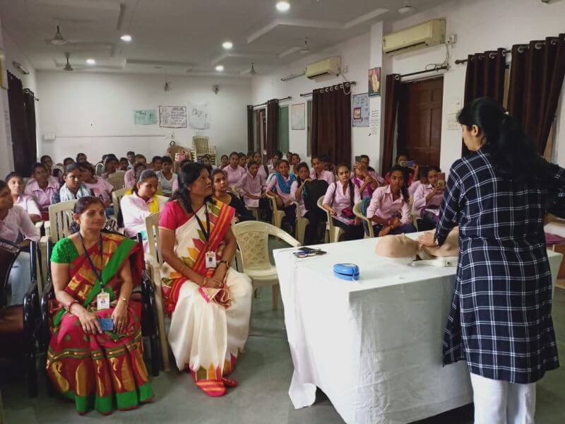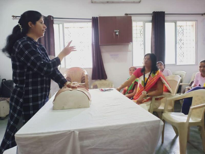 Around 90 students, three staff members and their principal were given hands on training on mannikin. A ppt presentation of COLS and demonstration was given by Dr. Rajkumari Wadhwani, Executive member ISA NCB.