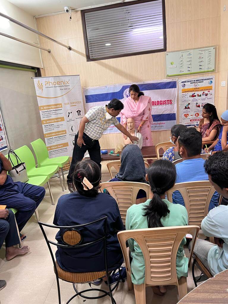 Indian Society of Anesthesiologist Nagpur City Branch conducted a BCLS activity for the doctors and staff of Phoenix hospital, Ramdaspeth Nagpur on 15th April.2022 from 2pm to 3pm.