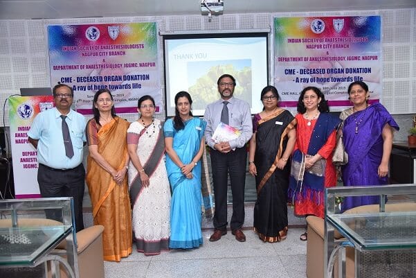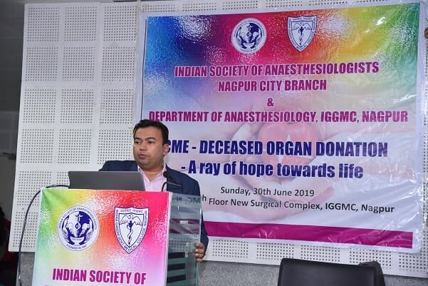 Transplantation of Human Organ Act (THOA) was passed in 1994 and after maturing through many loopholes is now in its silver jubilee year, this year 2019. A CME commemorating the act ‘Deceased Organ Donation – A ray of Hope towards life’ was organised by ISA, Nagpur City Branch along with Department of Anaesthesiology, Indira Gandhi Govt. Medical College, Nagpur, on 30th of June 2019, Sunday, at Lecture Hall, Surgical Complex, IGGMC, Nagpur.