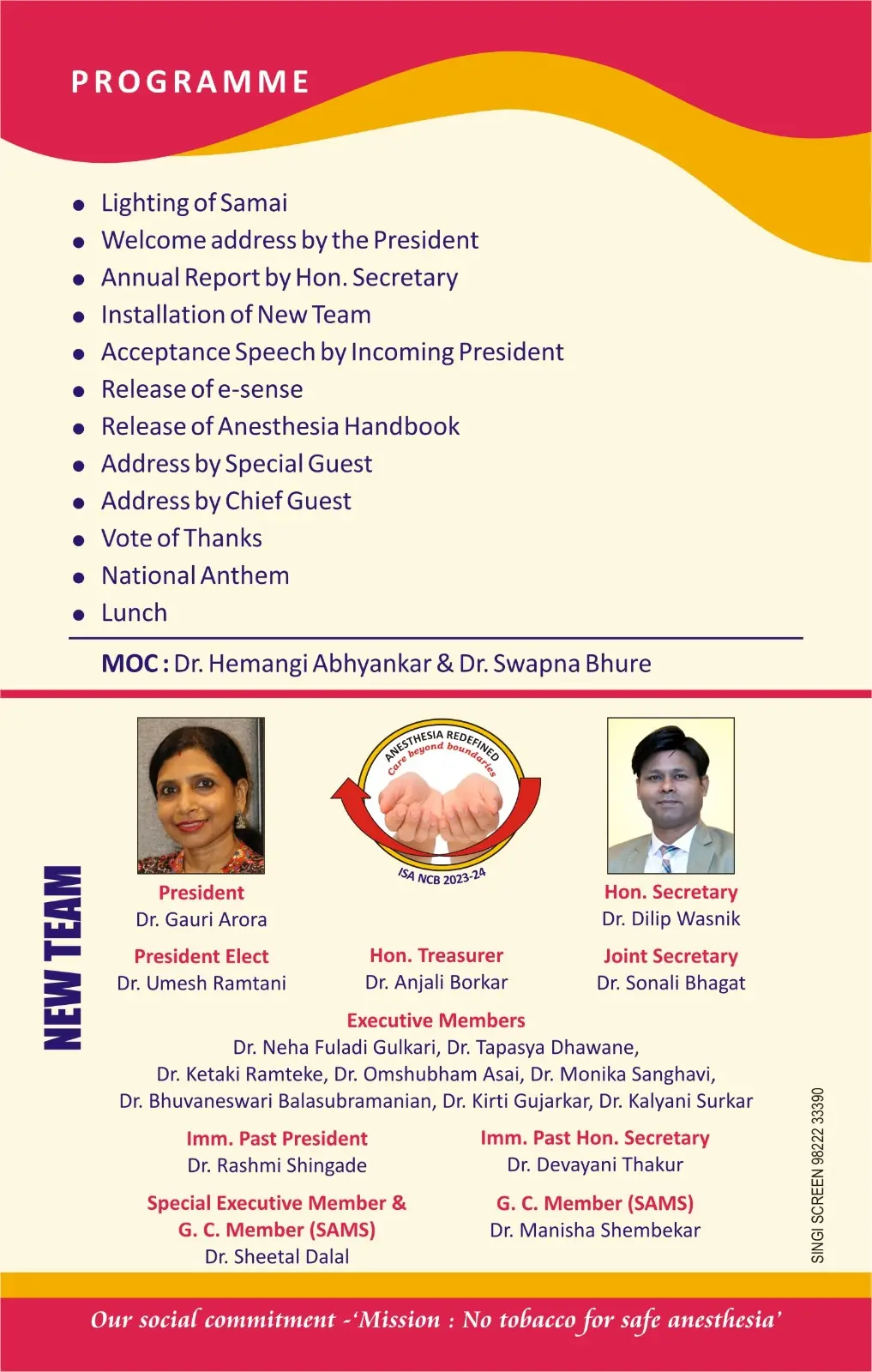 as the ‘President of ISA-NCB’ & her TEAM for the year 2023-24