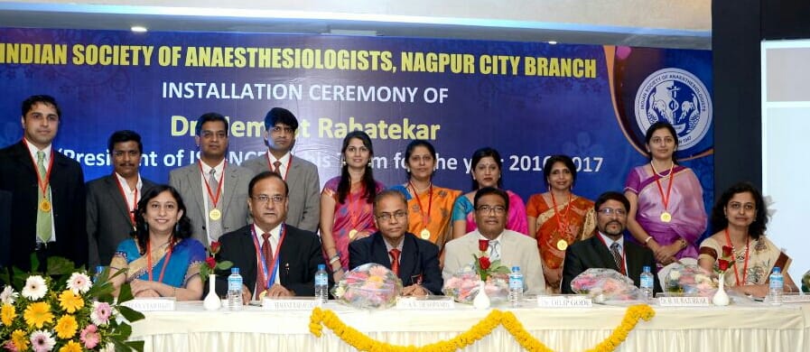 TAKE up life saving training to the public, this is the motto of the newly elected body of the Anaesthesia Society installed recently with Dr Hemant Rahatekar as President and Dr Kiran Vyawahare as Secretary. Dr Dilip Gode Vice-Chancellor of Datta Meghe Institute of Medical Sciences (DMIMS) Deemed University, Sawangi, Wardha, was the chief guest and installation took place in the presence of Dr Ashok Deshpande, President of State ISA.