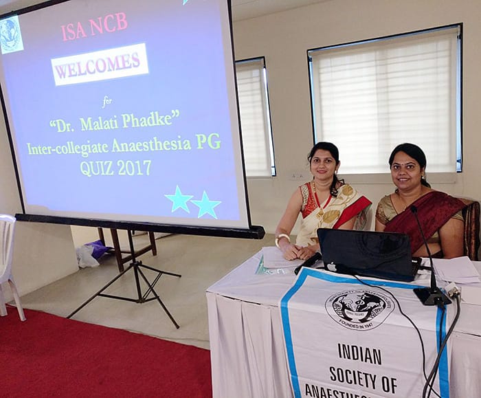 This is a much awaited academic activity of ISA NCB. Dr. Priya Sadavarte (Associate professor in Anesthesiology at NKPSIMS) and Dr. Vrishali Ankalwar (Associate professor in Anesthesiology at G.M.C., Nagpur) were the quiz-masters.
