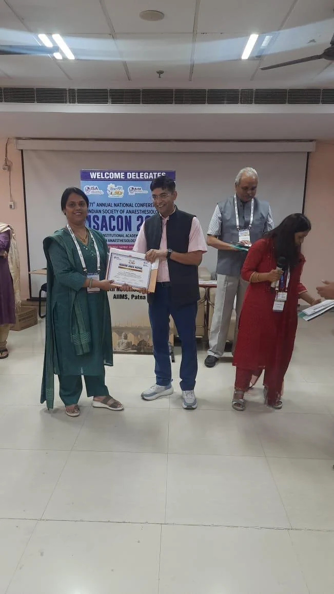 - 3rd Prize, Dr. B.B. Mishra Memorial Young Anaesthesiologists National Award